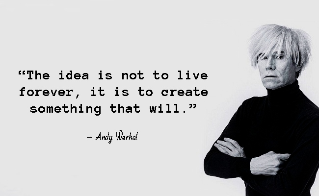 - “The idea is not to live forever, it is to create something that will.” – Andy Warhol