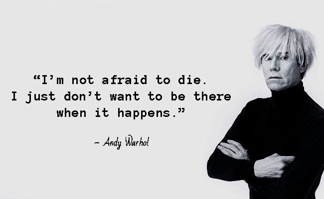 - “I’m not afraid to die. I just don’t want to be there when it happens.” – Andy Warhol